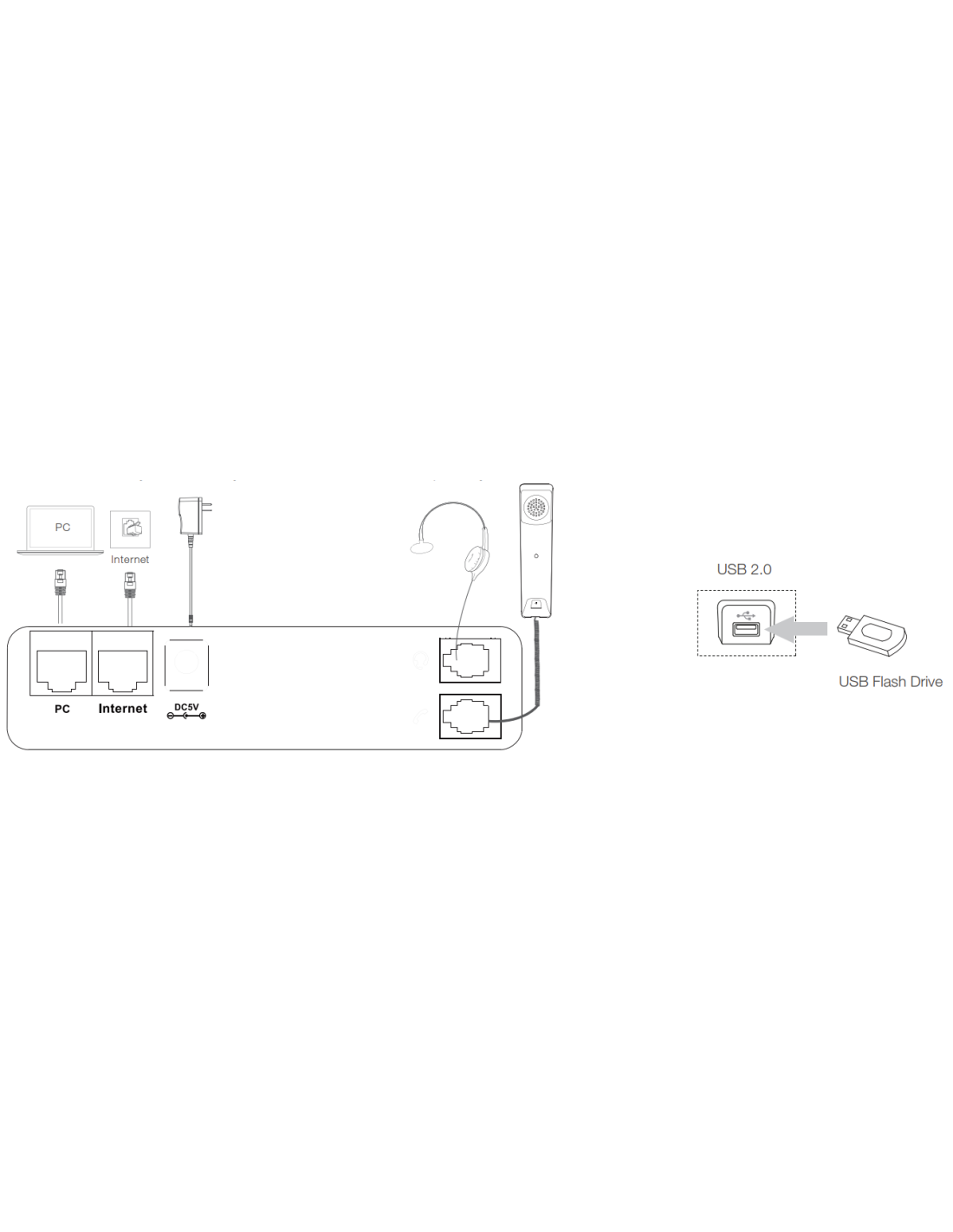 - 2 x USB 2.0 aansluiting voor Yealink CAM50, headset, DECT dongle of Expansion Module