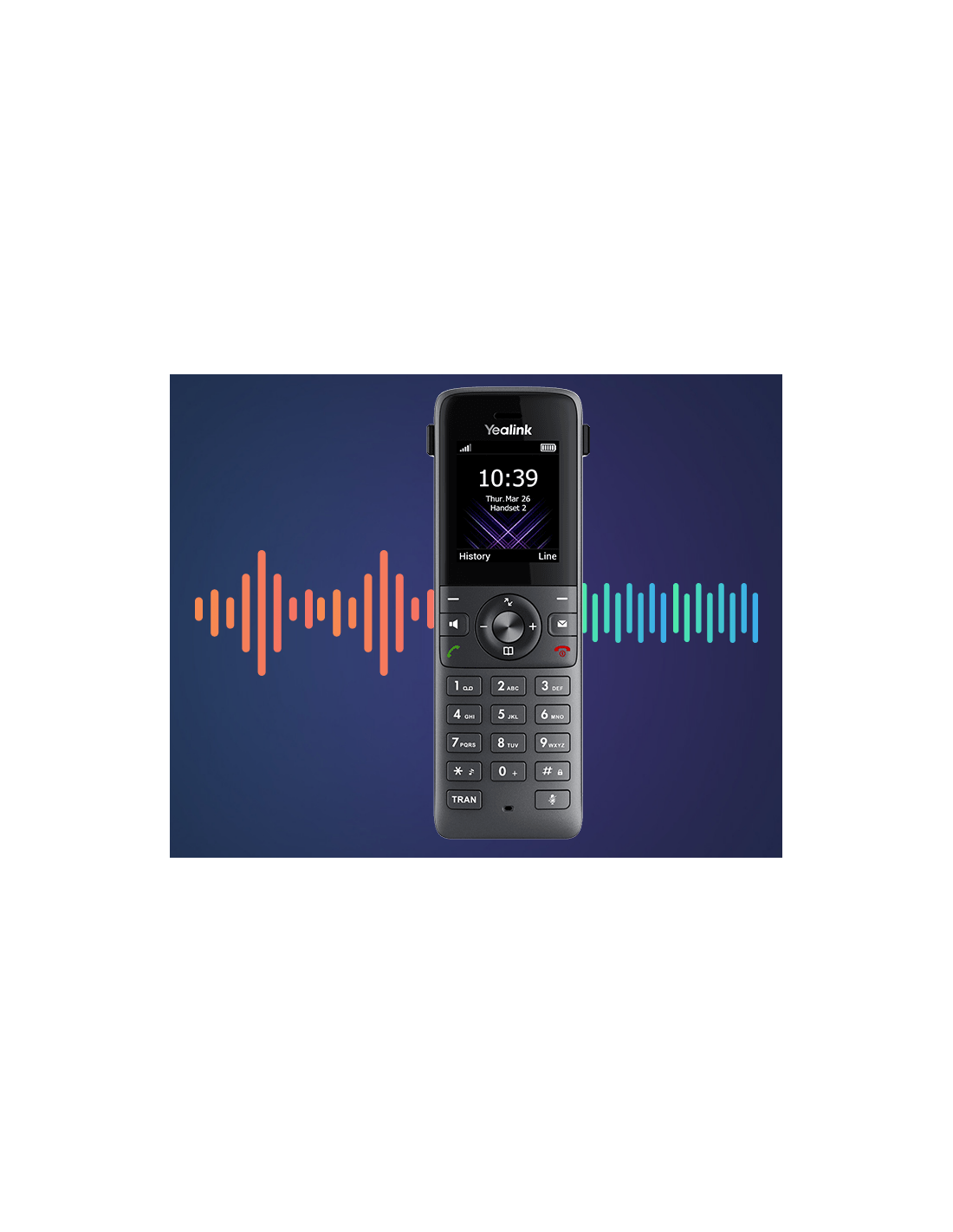 De Yealink W73H DECT Handset is een DECT draadloze handset ontworpen voor de MKB-omgeving, praktijken en thuiskantoren, die op zoek zijn naar een betrouwbare draadloze telefonie-oplossing voor een interessante prijs. De W73H kan als uitbreiding worden aangemeld op de Yealink W70B DECT-basisstation en Yealink W90 Multi-Cell DECT-basisstations. De Yealink W73H DECT Handset is aan te melden op een Yealink W70B DECT-basisstation die uit te schalen is tot 10 handsets. De Yealink W53H DECT Handset is aan te melden op een Yealink W90B Multi-Cell DECT-basisstation die uit te schalen is tot 250 handsets voor meerdere gelijktijdige gesprekken. U kunt meerdere sets naast elkaar gebruiken als u de apparatuur met een hiervoor geschikte IP-dienst combineert.