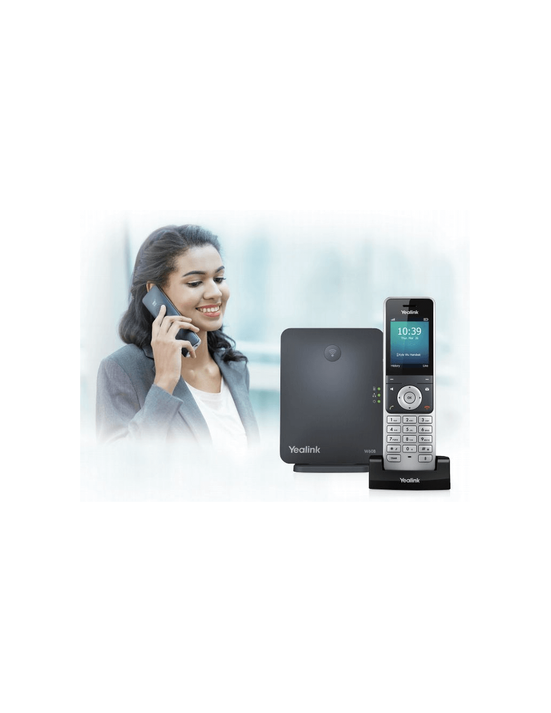 De Yealink W60P DECT Basis + Handset (SIP) is een DECT draadloos high performance IP-telefoonsysteem ontworpen voor de MKB-omgeving, praktijken en thuiskantoren, die op zoek zijn naar een betrouwbare draadloze telefonie-oplossing voor een interessante prijs. Ook is de Yealink W60P DECT Basis + Handset (SIP) schaalbaar (meerdere toestellen, meerdere gelijktijdige gesprekken) en kunt u meerdere sets naast elkaar gebruiken als u de apparatuur met een hiervoor geschikte IP-dienst combineert. De Yealink W60P DECT Basis + Handset (SIP) bestaat uit een W60B DECT-basisstation en een W56H DECT-handset.