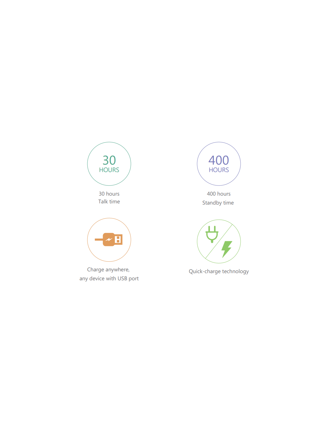 - Tot 30 uur gesprekstijd, tot 400 uur stand-by tijd