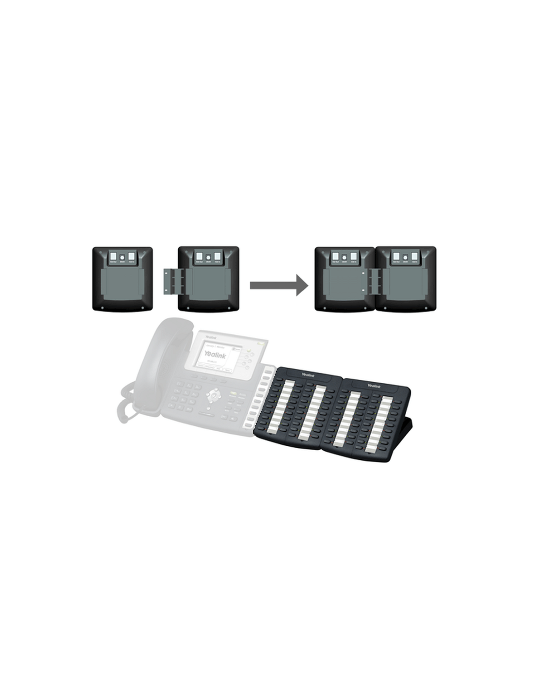 De Yealink EXP38 Expansion Module breidt het aantal snelkeuzetoetsen van uw Yealink VoIP telefoon uit met maar liefst 38 extra snelkeuzetoetsen. Er kunnen maximaal zes expansion modules achter elkaar worden geplaatst voor maximaal 228 extra snelkeuzetoetsen. Ideaal voor receptietoestellen!