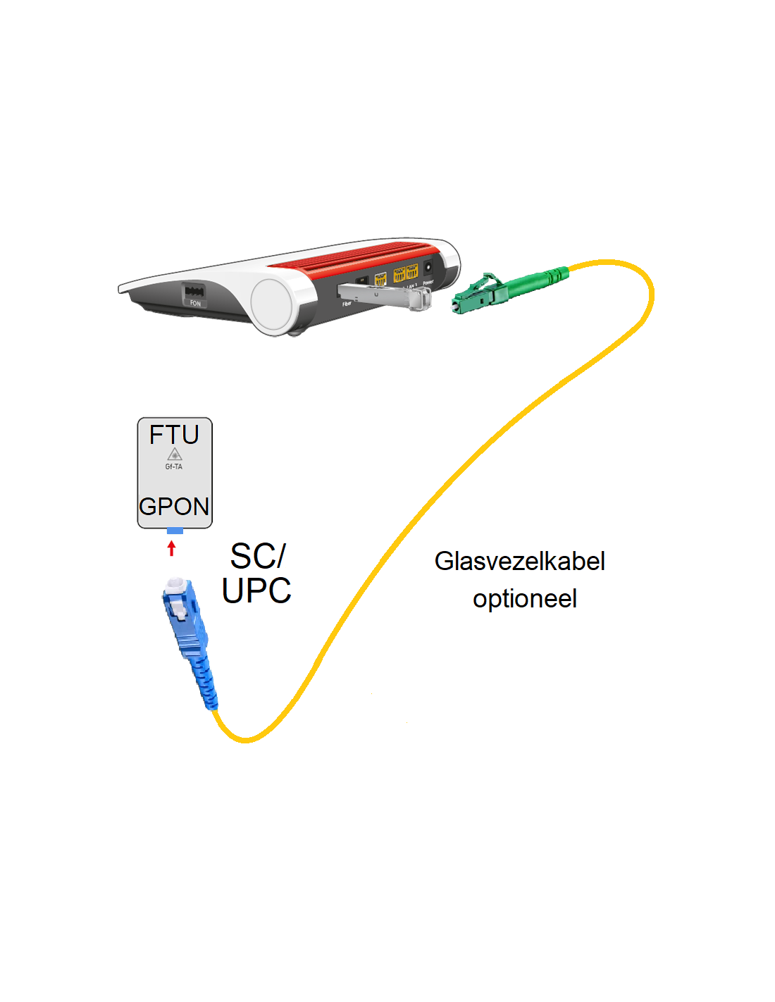 - met een GROTE BLAUWE glasvezelconnector: Glasvezelkabel-set SC-LC BLAUW (SC-UPC/LC-APC)