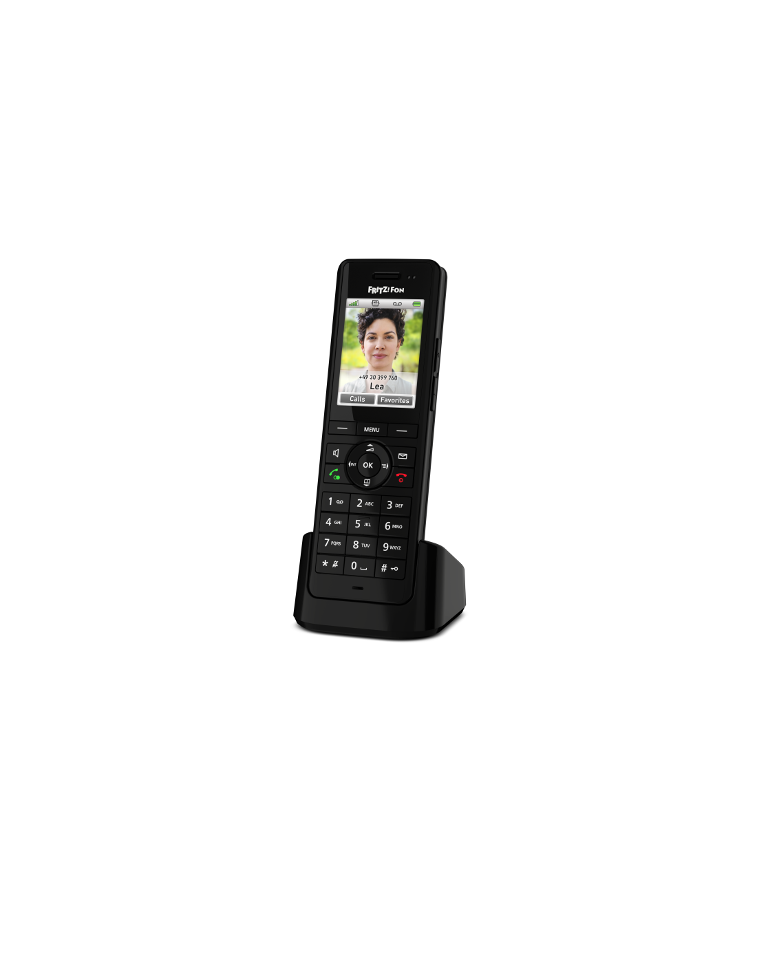 De FRITZ! Fon X6 presenteert zichzelf in een gereviseerd jasje en een aangenaam eenvoudig design. Dankzij het ergonomische, verlichte toetsenbord met berichtentoets, en het kleurenscherm met hoge resolutie is de omgang met de FRITZ!Fon een plezier.