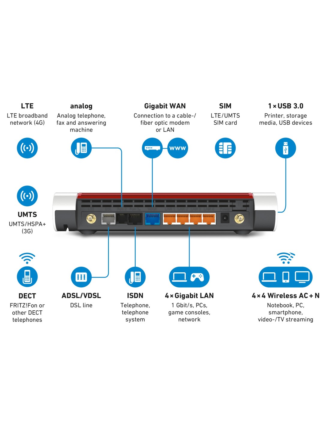 - DSL met tot 300 Mbit/s met LTE-fallback-optie
