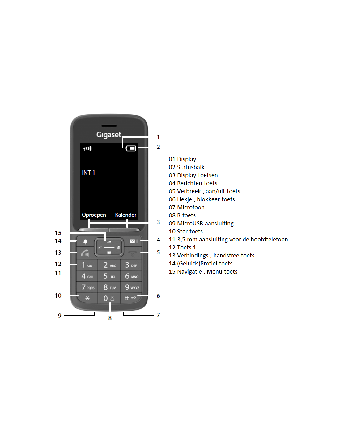 - HD-audio via Gigaset Pro-basisstation met visuele oproepindicatie op het display