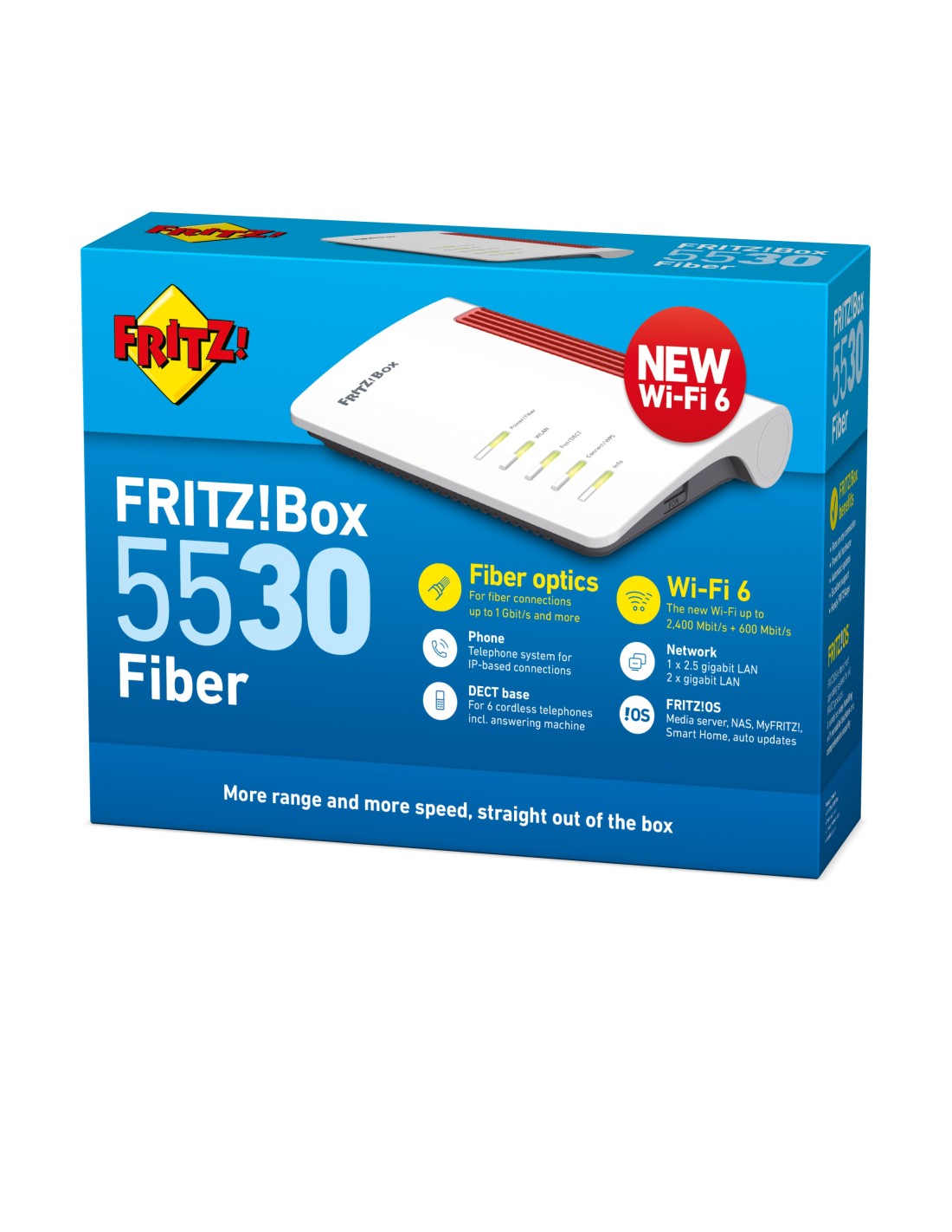 De FRITZ!Box 5530 Fiber kan rechtstreeks worden gebruikt op elke glasvezelaansluiting van het AON-glasvezelnetwerk - zonder mediaconverter of voorgeschakelde providermodem. Door de nieuwe geïntegreerde internetstandaard WiFi AX (WiFi 6) met Multi-User MIMO en een 2,5 Gigabit-LAN poort is de FRITZ!Box 5530 Fiber een betrouwbare centrale voor je thuisnetwerk.
