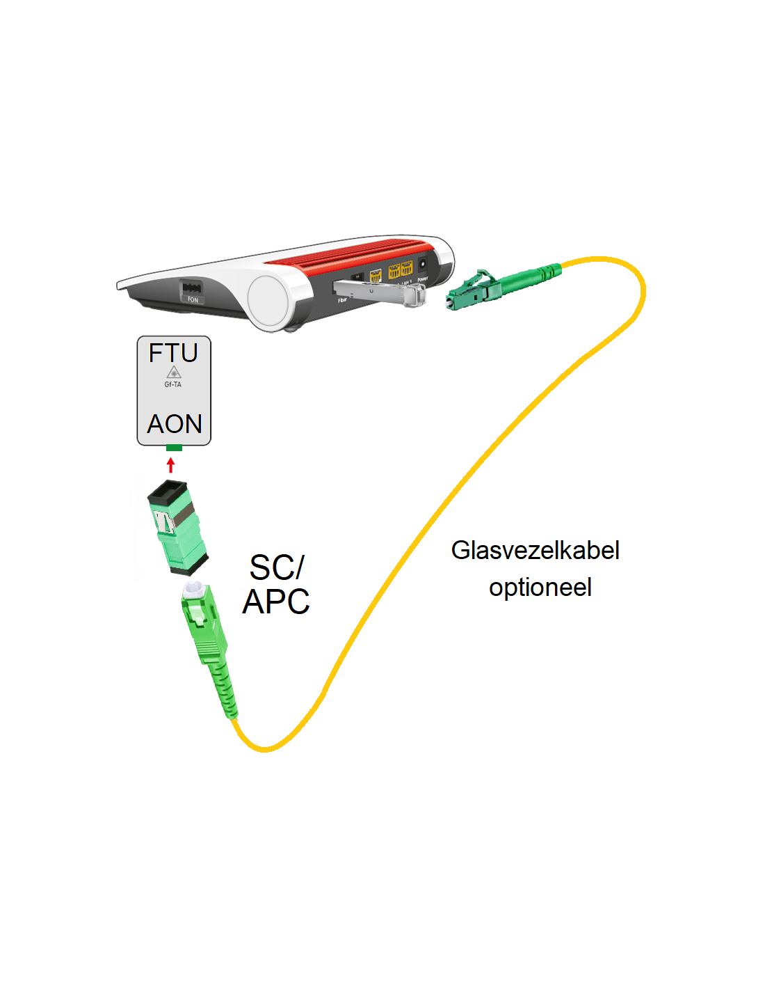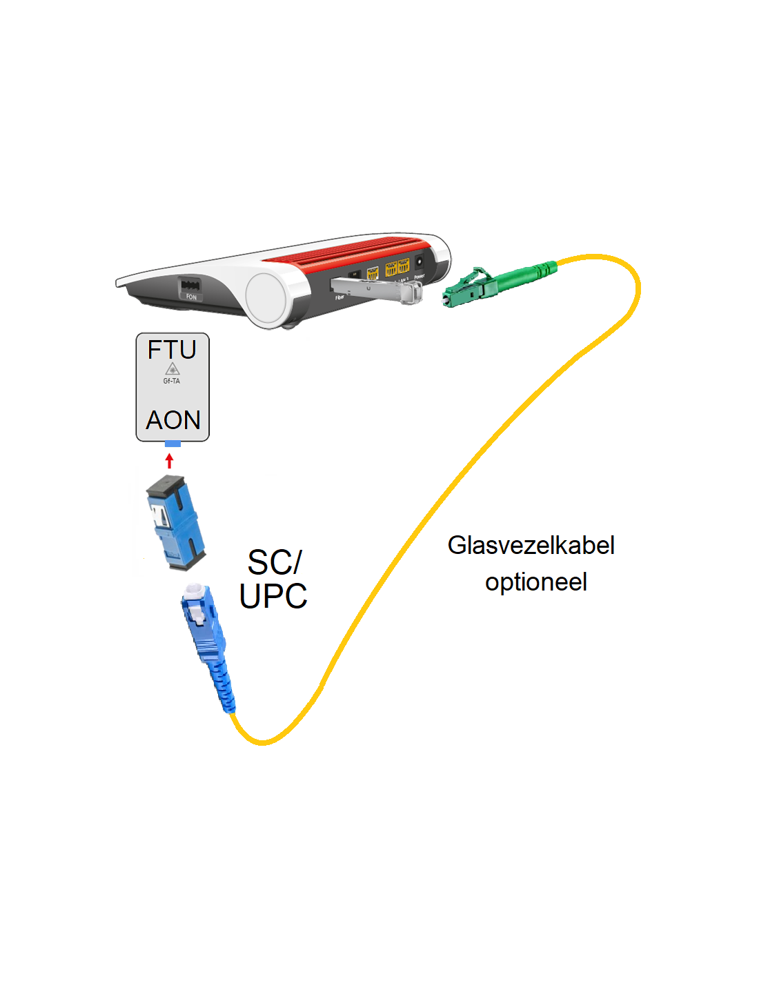 De glasvezel-aansluiting op de muur bepaald welke glasvezelkabel en/of patch cover er nodig is. Bepaal het type glasvezel-aansluiting op de muur en bestel de juiste glasvezelkabel en/of patch cover. De volgende glasvezel en/of patch cover heeft u nodig voor de glasvezel-aansluiting op de muur:
