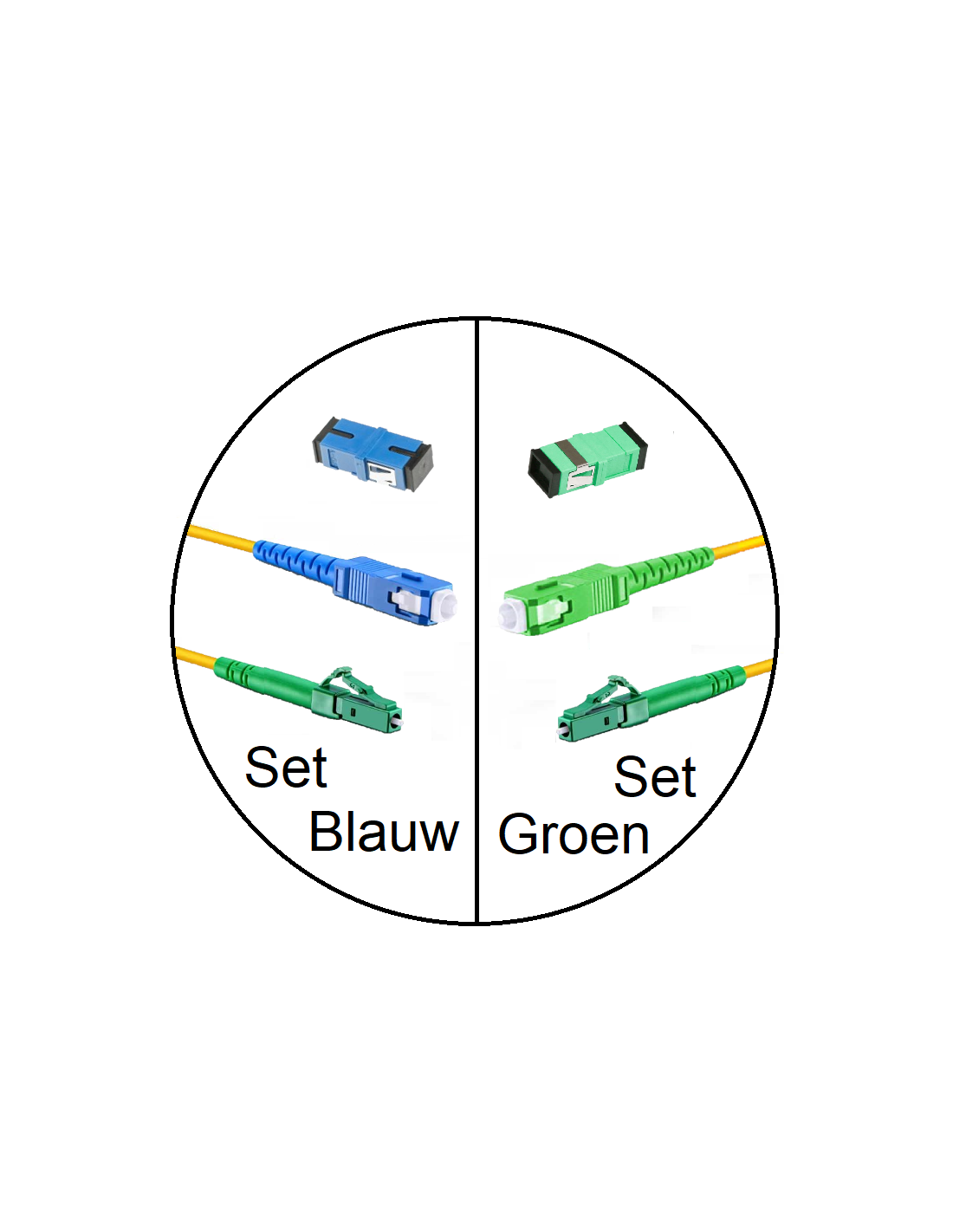 - Glasvezelkabel met een GROENE- en BLAUWE aansluiting (LC/APC - SC/UPC)
