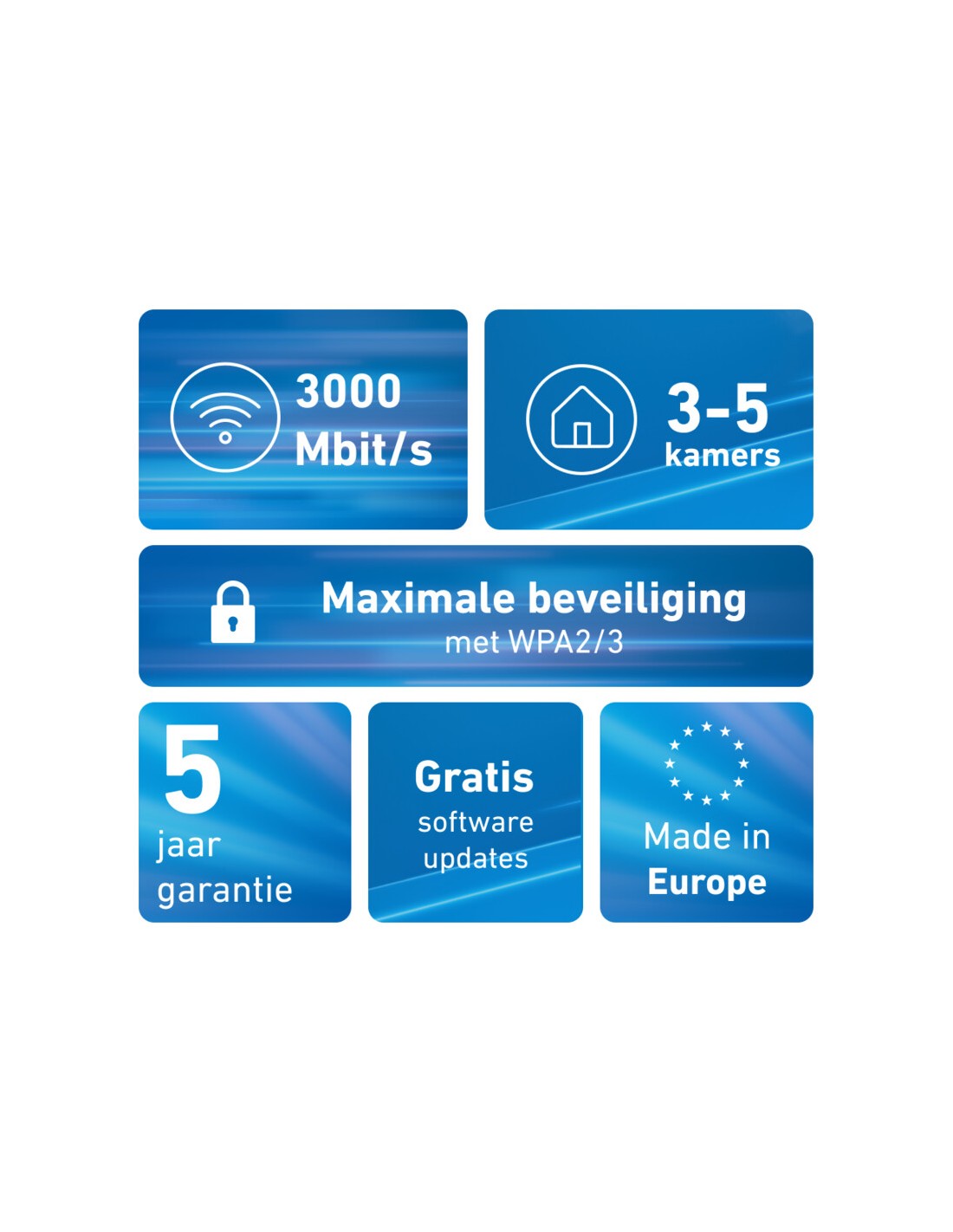 • Uitgebreide WiFi-dekking: 3-pack voor 5 - 7 kamers, 2-pack voor maximaal 5 kamers