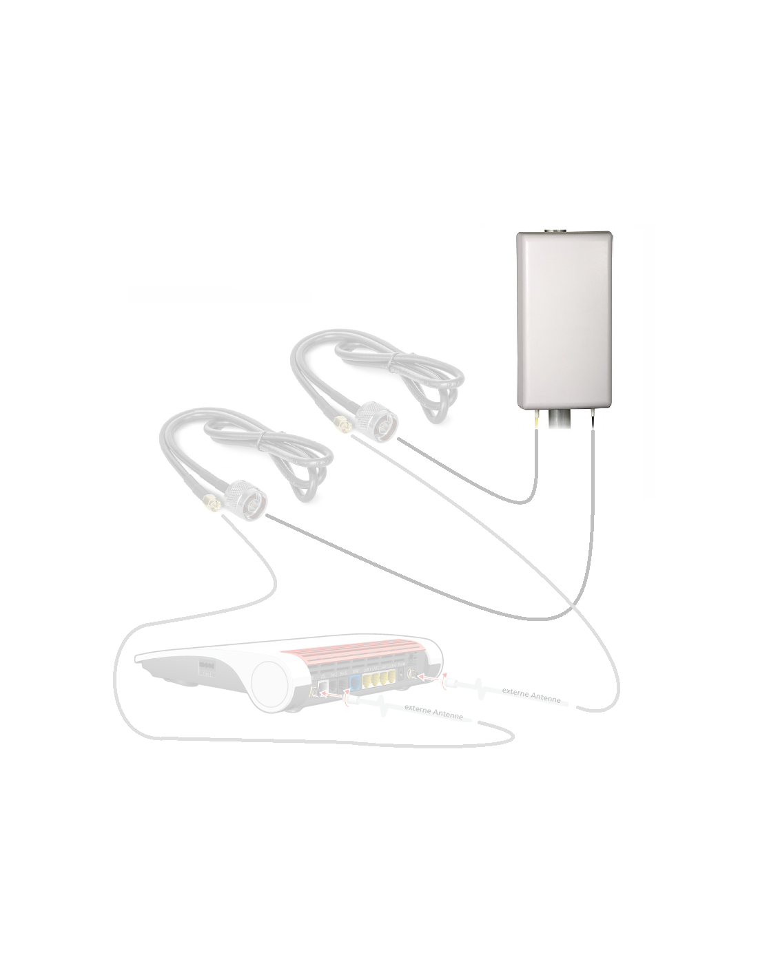 Deze buitenantenne is geschikt voor de FRITZ!Box LTE/5G-serie en de DrayTek Vigor LTE serie. Tijdens het opstellen dient de antenne te worden gericht op de mast van de dataprovider.