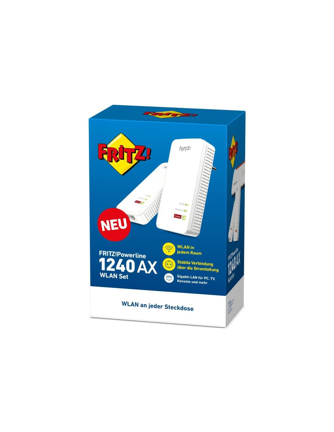 - 1 x FRITZ!Powerline 1240 AX (Gigabit-LAN + WiFi 6 access point)