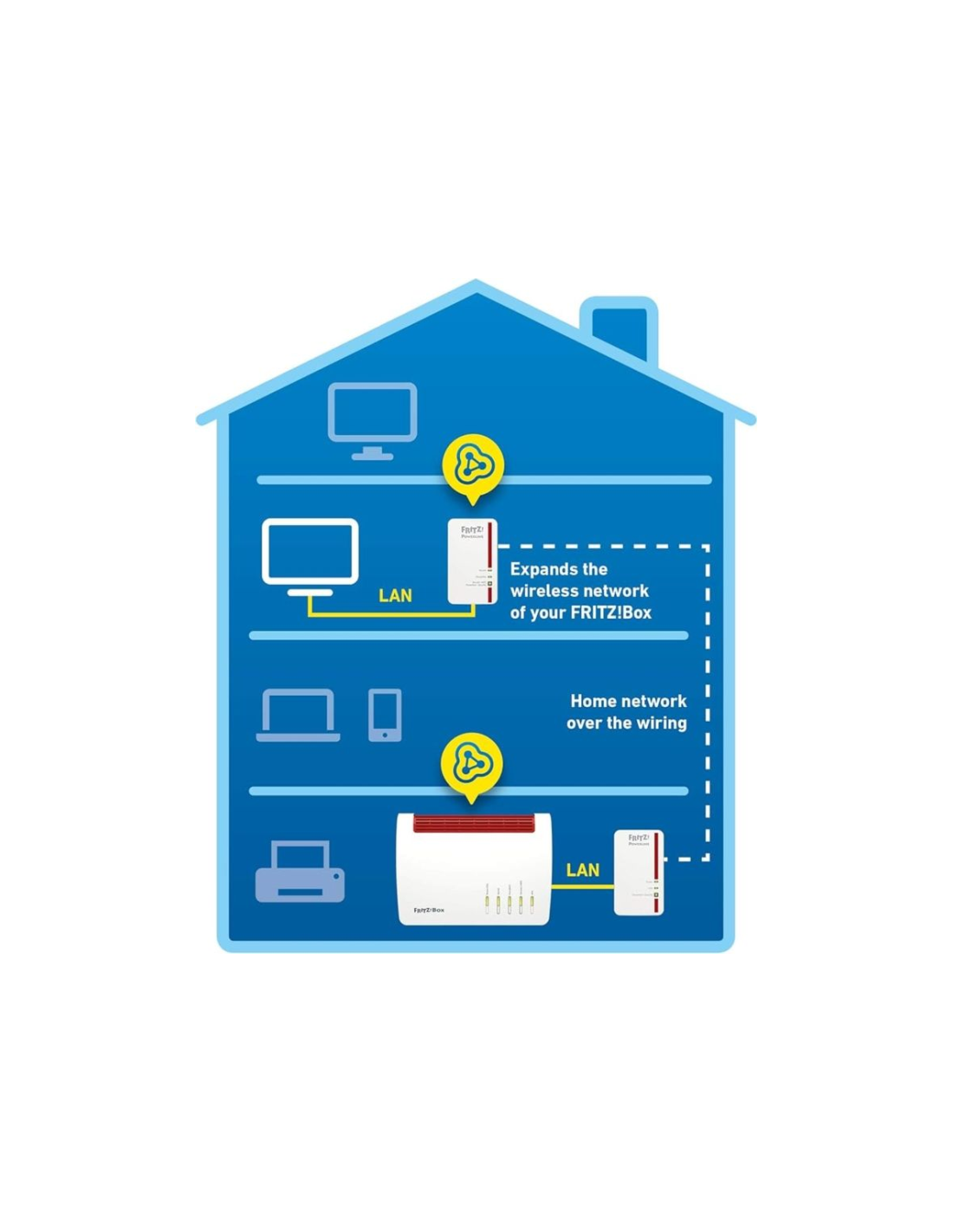 - Optimale integratie in het FRITZ!Box-thuisnetwerk met update en bediening via webbrowser (fritz.box en fritz.powerline)