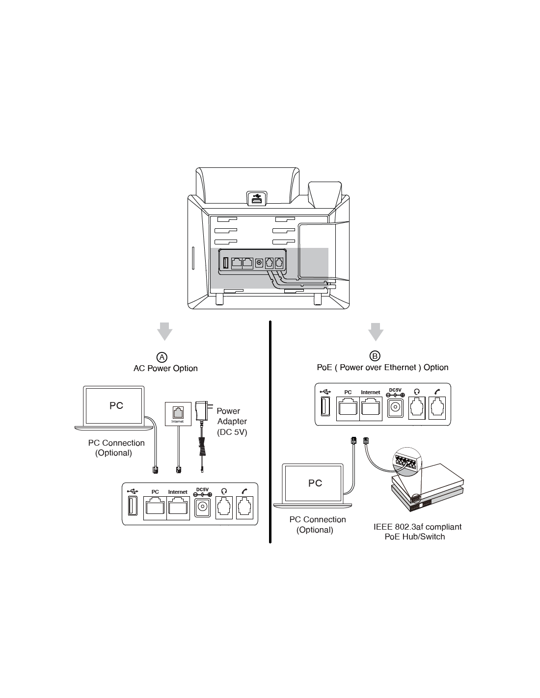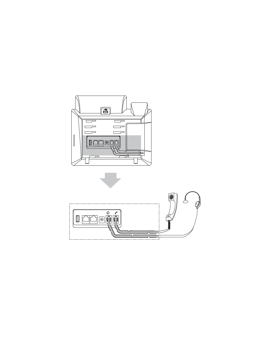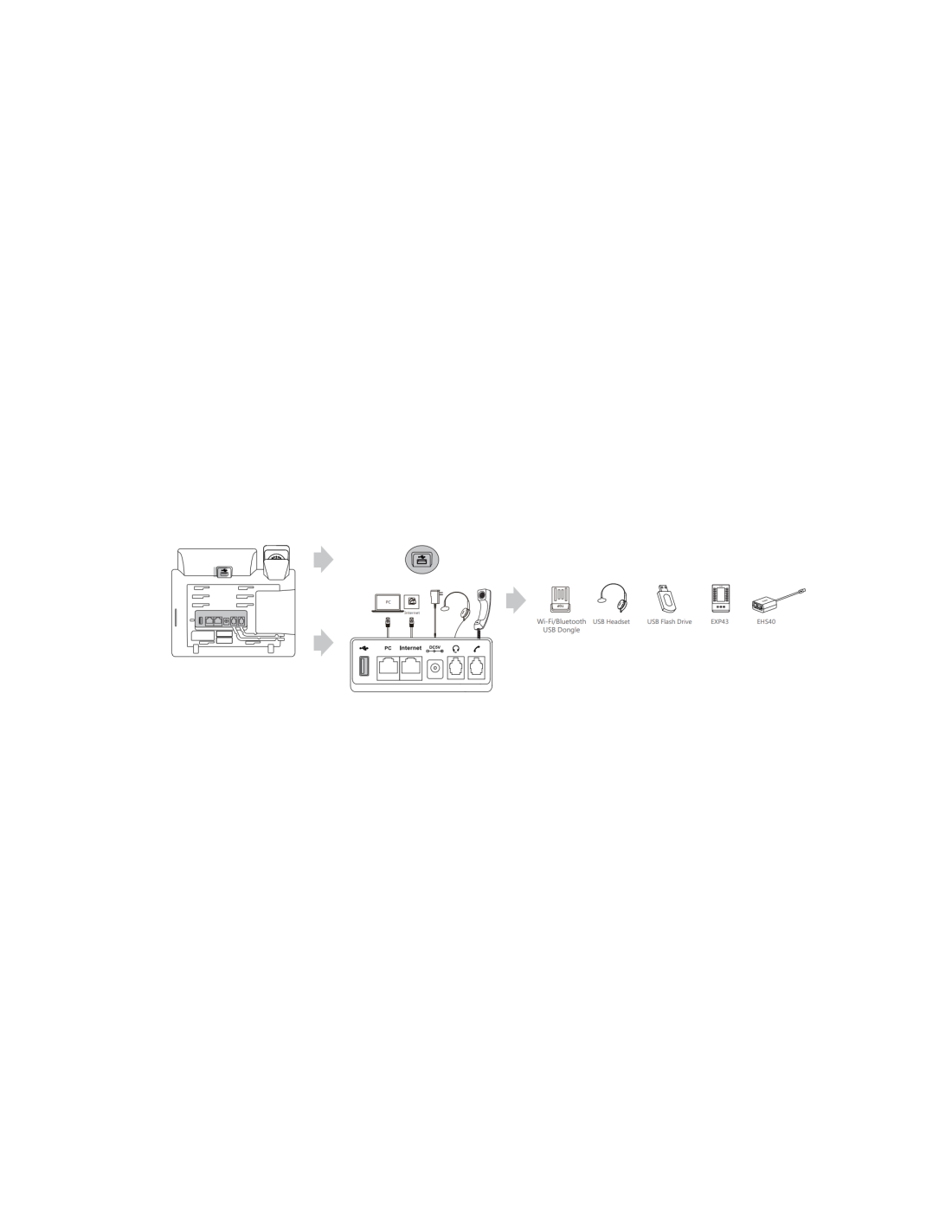 - 2 x USB-poort voor bv WiFi (WF40/WF50), Bluetooth (BT40/BT41), of Yealink USB headset