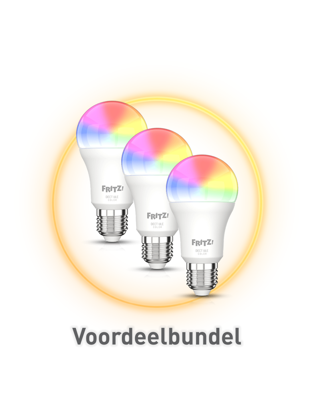 De FRITZ!DECT 500 verlicht je huis met alle kleuren van de regenboog. Deze intelligente LED-lamp met grote fitting integreert zich eenvoudig in het FRITZ!-thuisnetwerk. Samen met de FRITZ!DECT 500 wordt de FRITZ!Box de basis voor een intelligent verlichtingssysteem. De FRITZ!DECT 500 is gelijk te gebruiken met FRITZ!Boxen met FRITZ!OS 7.20.